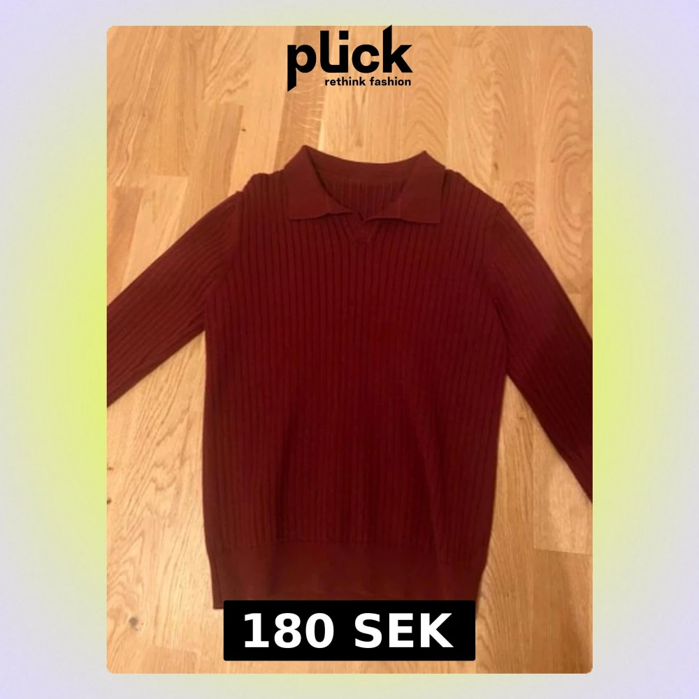 Vinröd stickad tröja med ribbad struktur och klassisk krage. Långärmad modell som ger en stilren och trendig look. Perfekt för dig som gillar en enkel men snygg stil. Materialet känns mjukt och följsamt.
