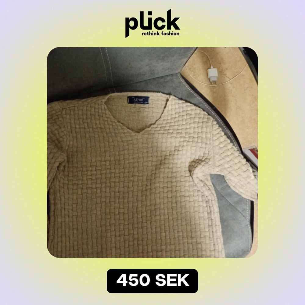 Säljer en superfin beige stickad tröja från Armani Jeans. Den har en snygg v-ringning och ett unikt vävt mönster som ger en cool textur. Perfekt för höst och vinter, och den är i mycket bra skick. Passar både till vardags och lite finare tillfällen. 🧶✨ Pris kan diskuteras. Kontakta för intresse