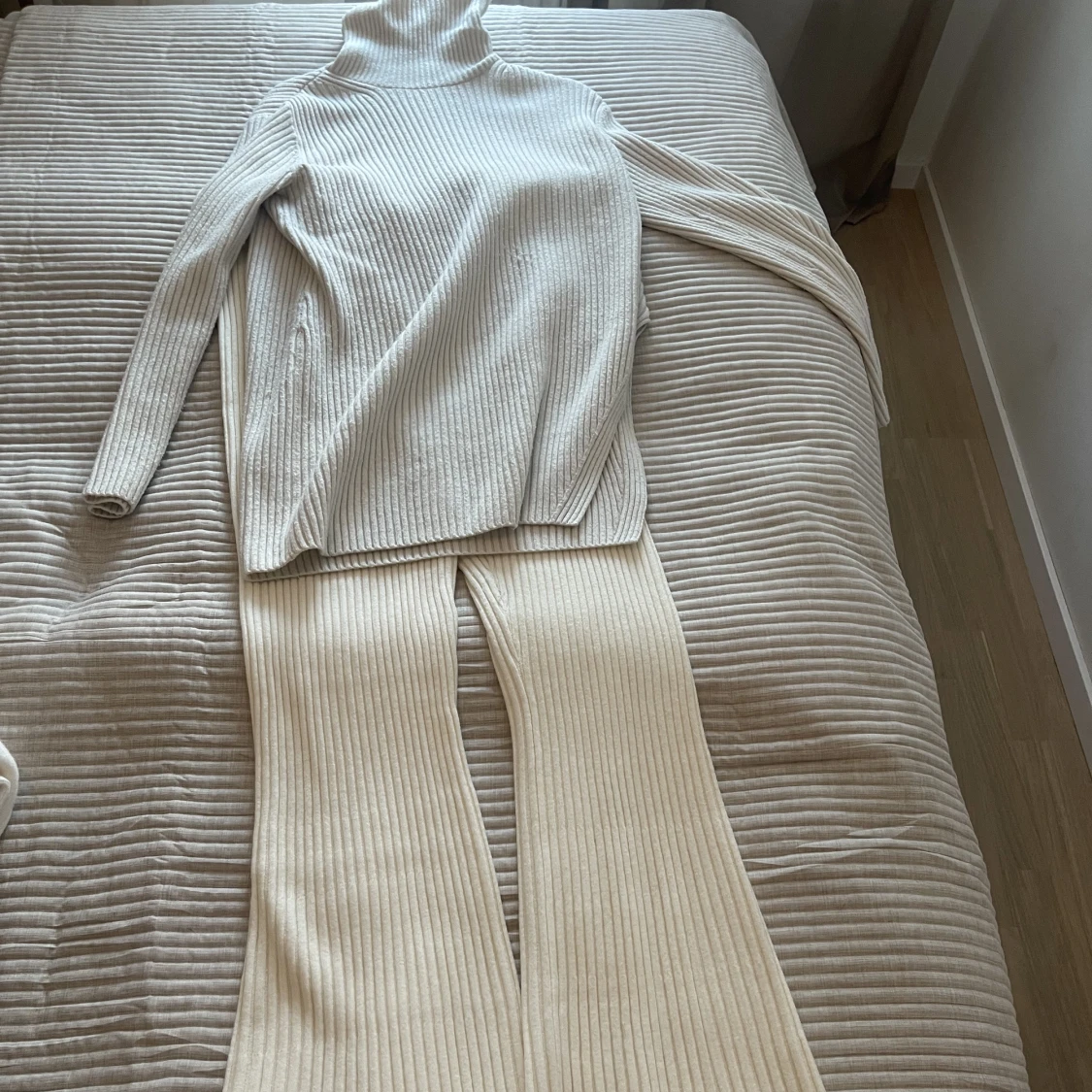 Ett sett med stickad tröja och stickade byxor, inte använda