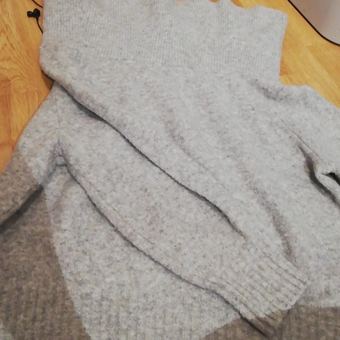 En grå jätte mysig stickad tröja från H&M. Säljer den för har aldrig använt den och den tar plats.