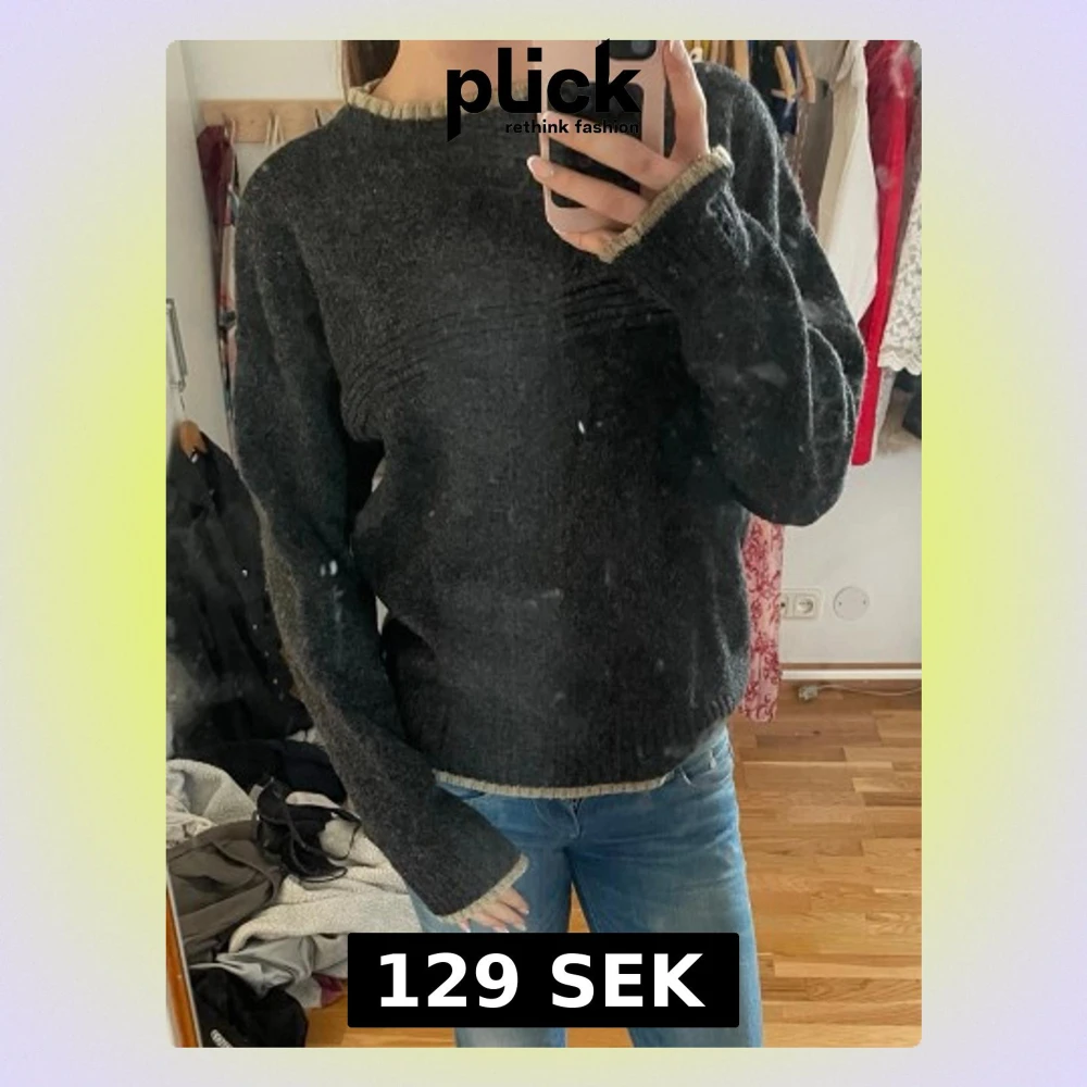 Svart ulltröja med beigea kanter