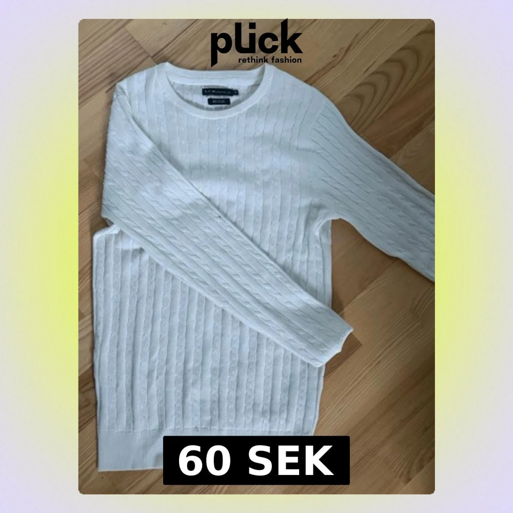 Vit ribbstickad sweatshirt