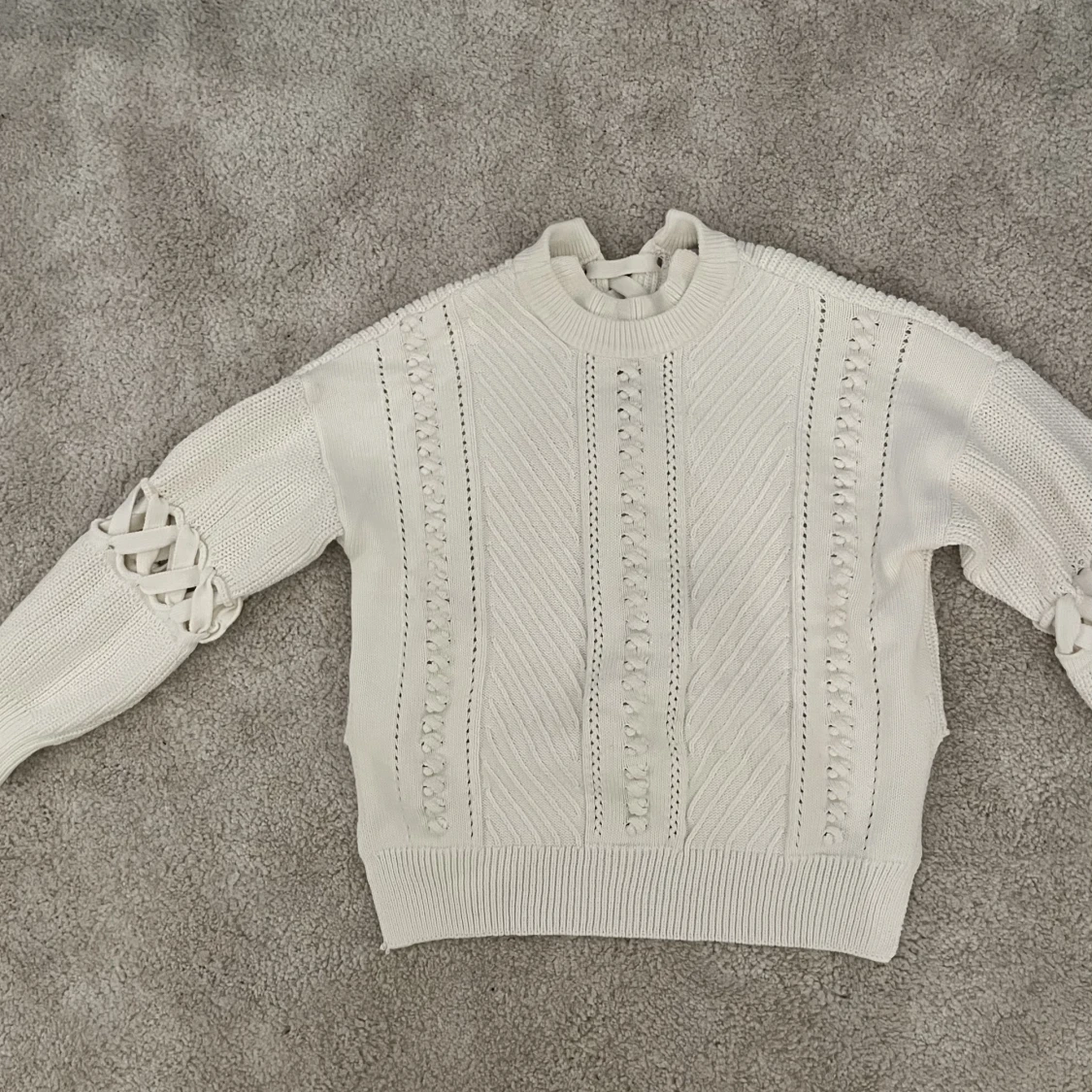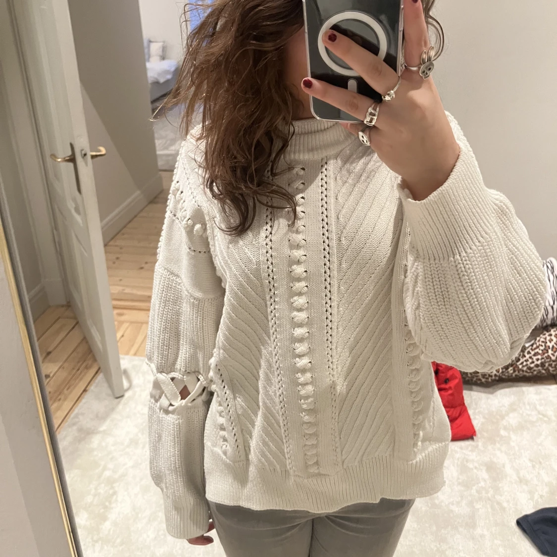 Super cool vit stickad Sandro tröja från gammal collektion! Strlk xs men passar S och även M beroende på vilken passform man vill ha💕 Köpt för 2000-3000 och är aldrig använd!
