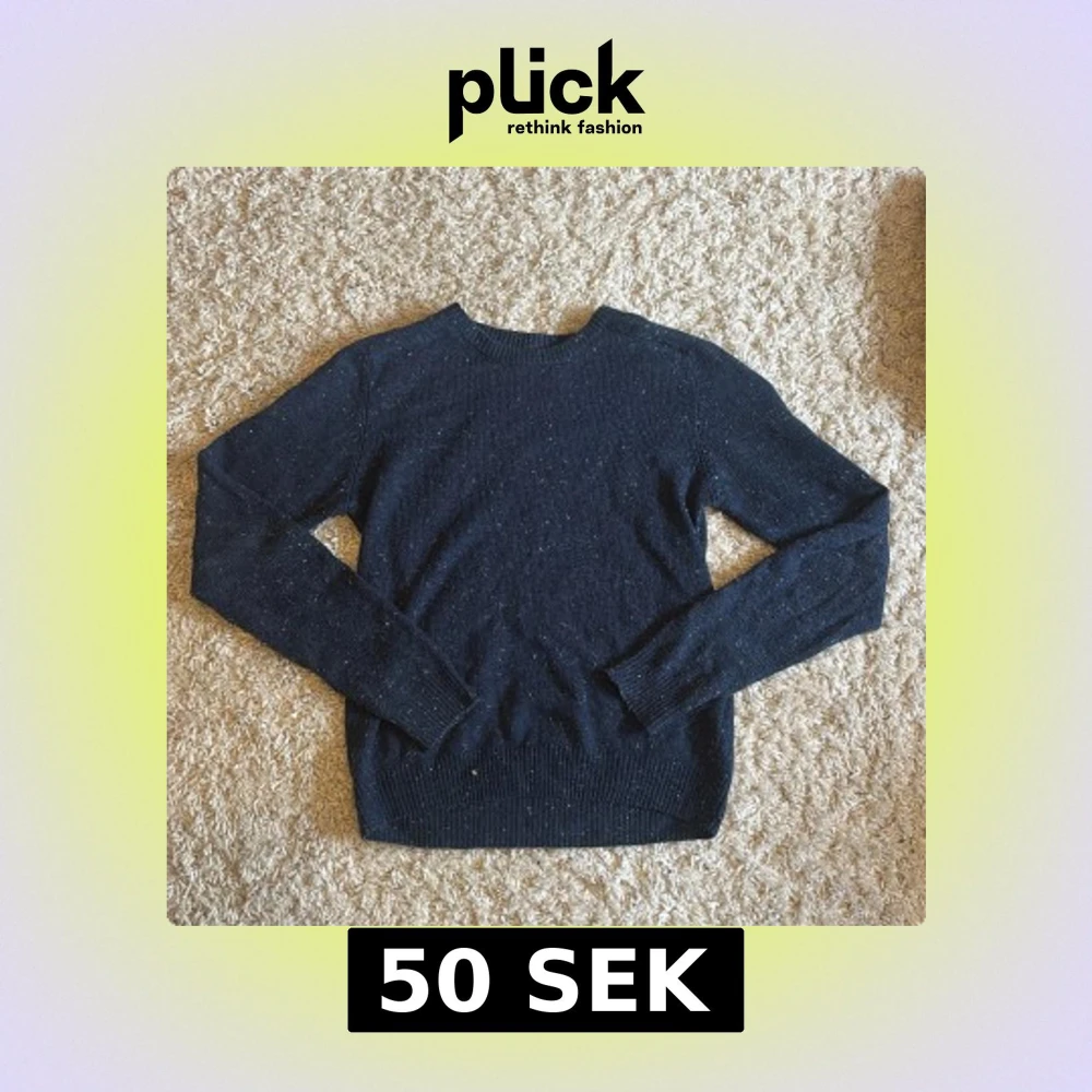 Mysig mörkblå stickad tröja med vita prickar i garnet. Klassisk rund halsringning och långa ärmar. Perfekt för lager-på-lager och chill dagar. Passar dig som gillar enkel men snygg stil.