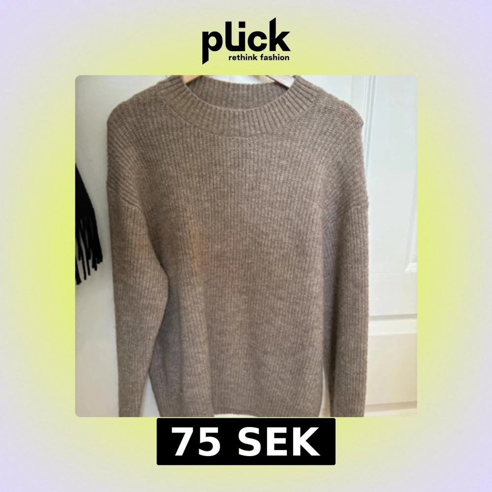 Tröjan är ribbstickad och har använts få gånger, den är i mörk beige/ljusbrun färg. Storlek M och satt oversized på mig som har XS/S. Tröjan är annars i väldigt bra skick och håller sin form. Den har inte blivit nopprig. Normal i storleken.