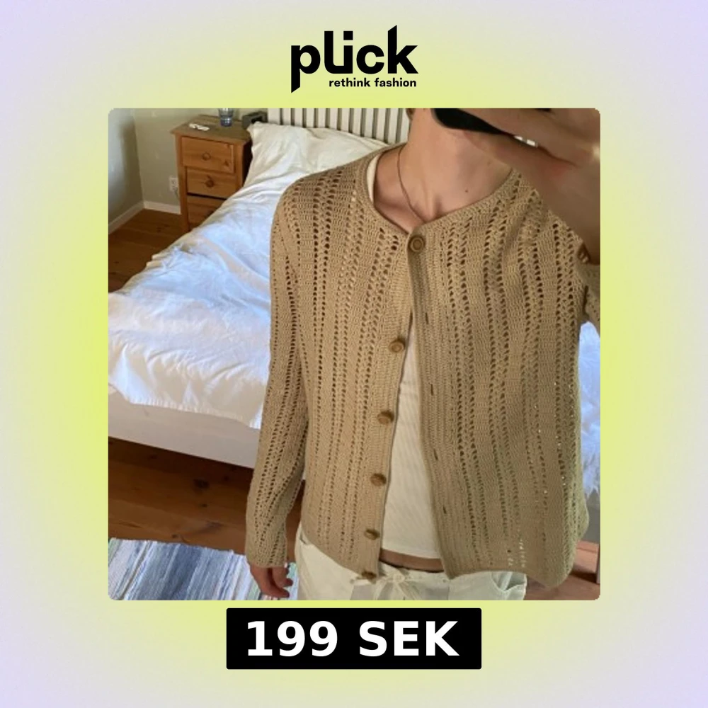 Säljer en beige virkad kofta med snygga knappar. Köpt vintage och står ingen storlek men skulle att den är typ m. 🤎