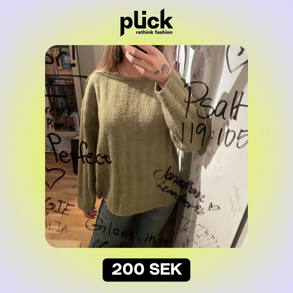 Säljer en supermysig olivgrön stickad tröja i mycket bra skick. Den har en avslappnad passform och långa ärmar, perfekt för höst och vinter. Tröjan är ribbad och ger en skön och varm känsla. Perfekt att mysa i hemma eller ha på sig ute i kylan. 💚
