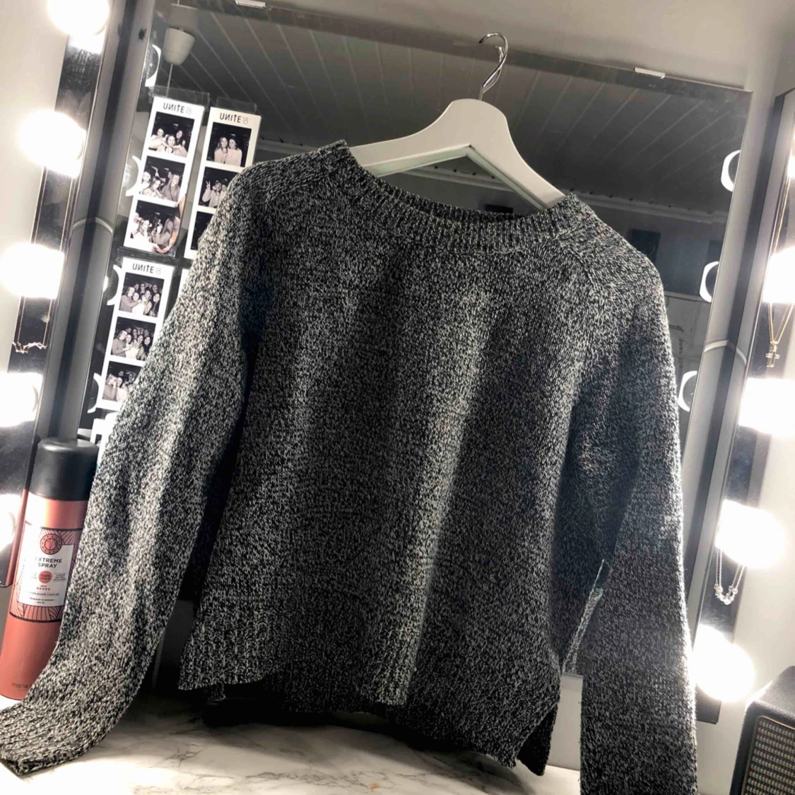 Skön stickad tröja med en liten slits på sidorna, som ger en fin kroppsform. Köparen står för eventuell frakt!