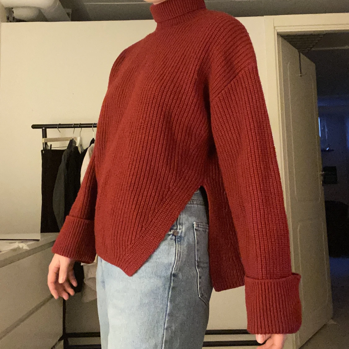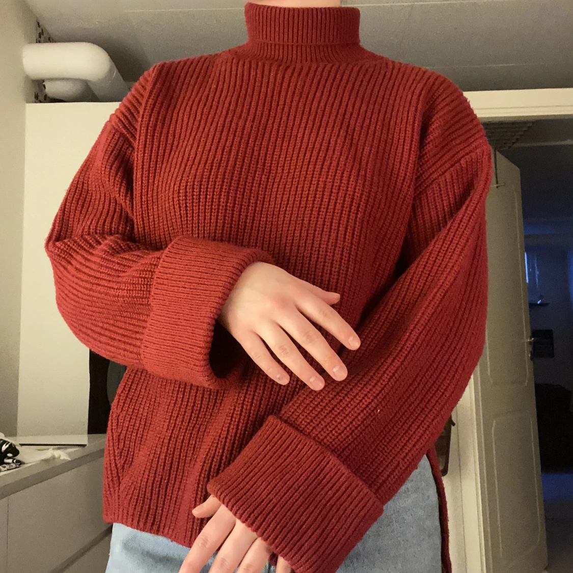 Den absolut bästa stickade tröjan till allt!! Perfekt till sommaren över klänningen, på hösten och vintern. Från & Other stories. Knappt använd. Stora vida ärmar, slits på sidan 😍 stämmer bäst i färg med första bilden. A true red. Köpt för 500 typ??