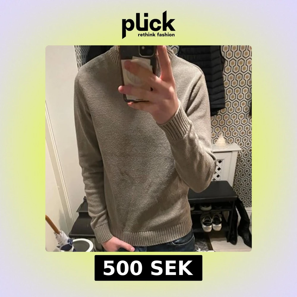 Säljer en stilren beige stickad tröja med ribbade muddar vid ärmslut och nederkant. Perfekt för kyligare dagar och enkel att matcha med olika outfits. Skick 9/10 väldigt fin använd Max 3 gånger