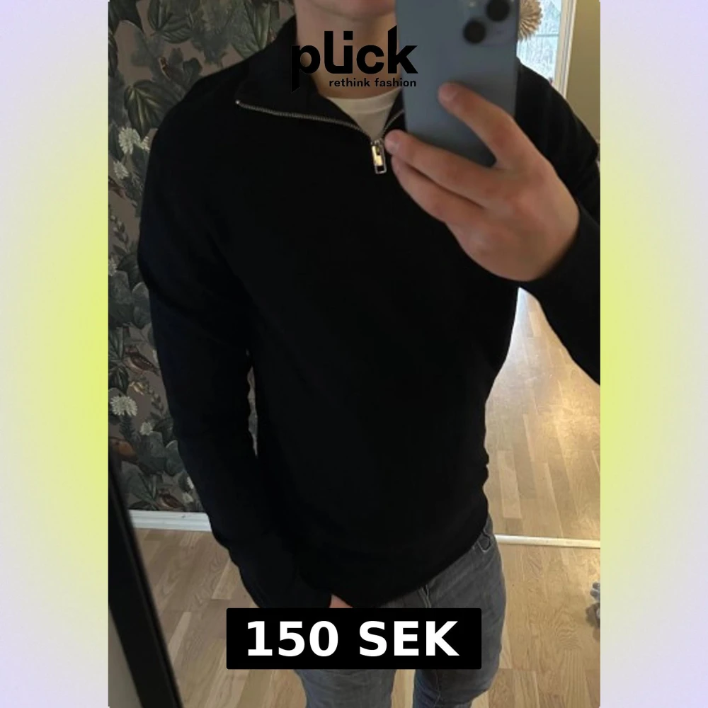 Svart stickad halfzip från Jack & Jones i storlek S. Inga defekter. Snygg svart färg. Hör av dig vid funderingar, priset är inte hugget i sten🤲🙌