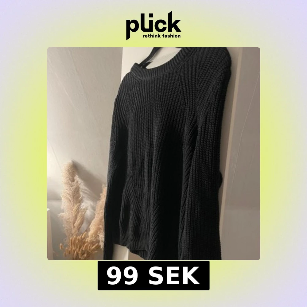 Säljer en svart stickad tröja från H&M BASIC i storlek L. Tröjan har lång ärm, rund halsringning och ett snyggt stickat mönster. Perfekt för kyligare dagar och enkel att matcha med olika outfits.