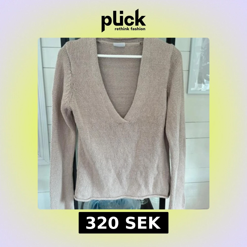 Snygg beige stickad tröja från Boomerang i storlek L. Tröjan har en djup v-ringning och långa ärmar, perfekt för dig som gillar en enkel men stilren look. Materialet är mjukt och skönt, och färgen är neutral vilket gör den lätt att matcha.