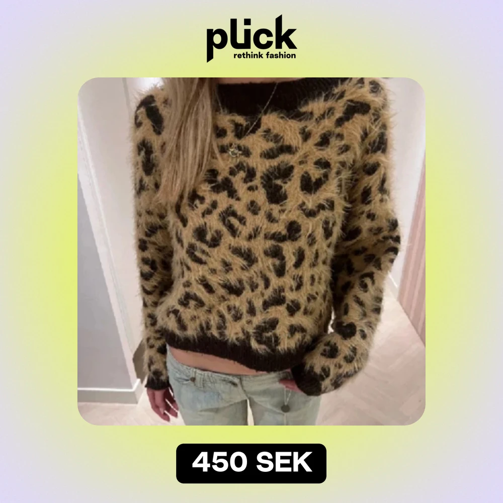 (Pris kan diskuteras)En leopard stickad tröja som inte kommer till användning. Storlek Xs men skulle nog säga att det funkar till S och M också💕