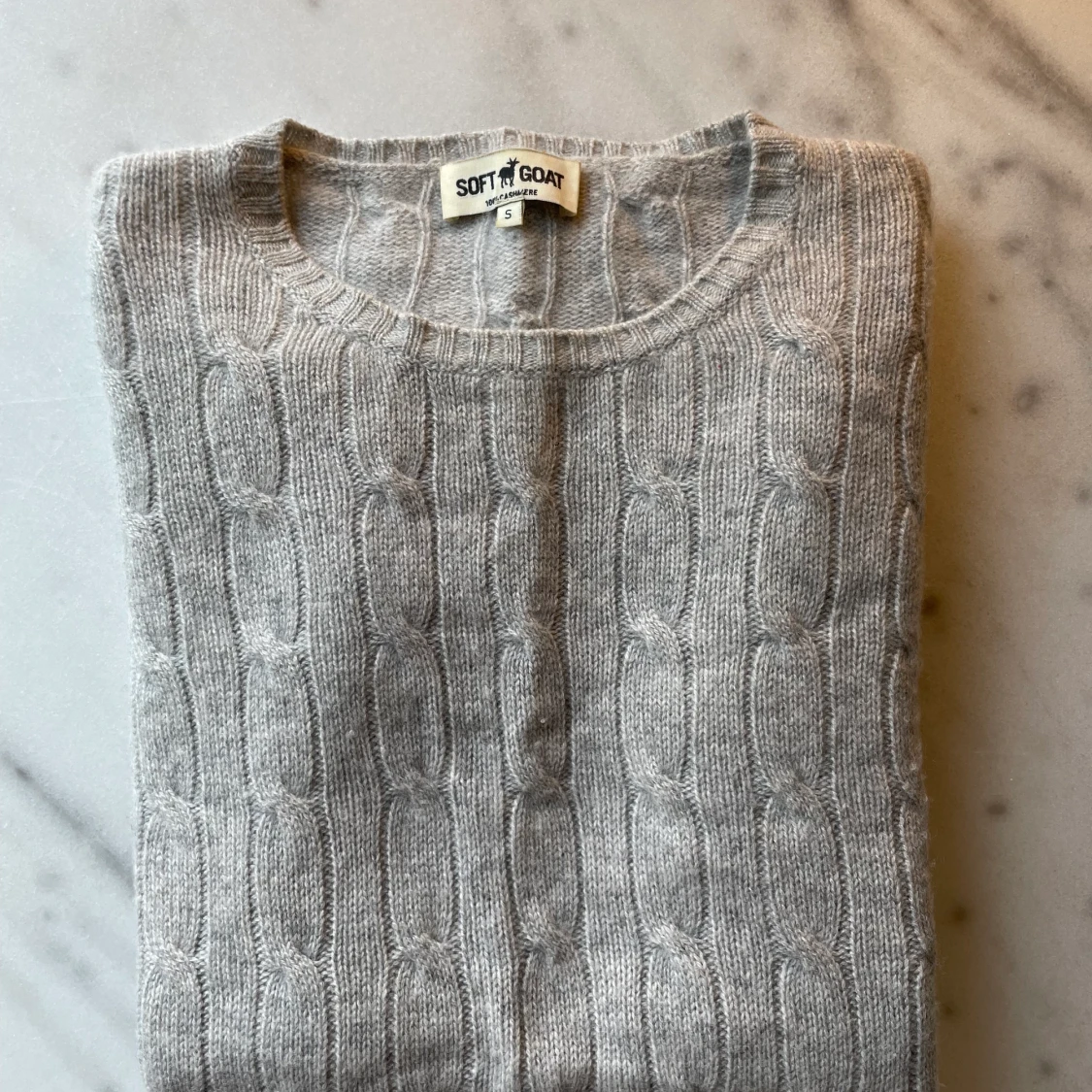 Kabelstickad kashmirtröja från soft goat i stl 36. Passar även en 34. Rundhalsad. Super fint skick utan noppror