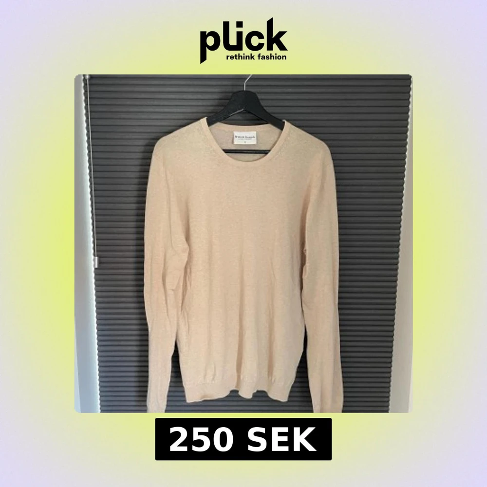 Stilren beige tunnt stickad tröja från Bruun & Stengade. Passa perfekt över en skjorta och är i mycket bra skick.