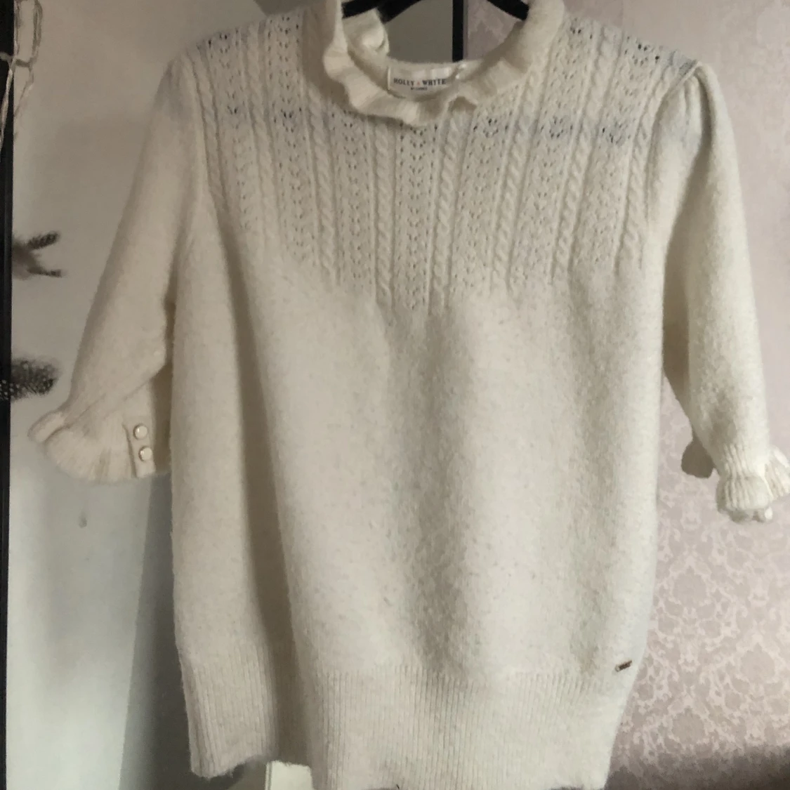 Jättefin stickad topp från holly&white i jättebra skick. Strl S. Nypris 300kr säljer för 190+ frakt då den endast är testad.