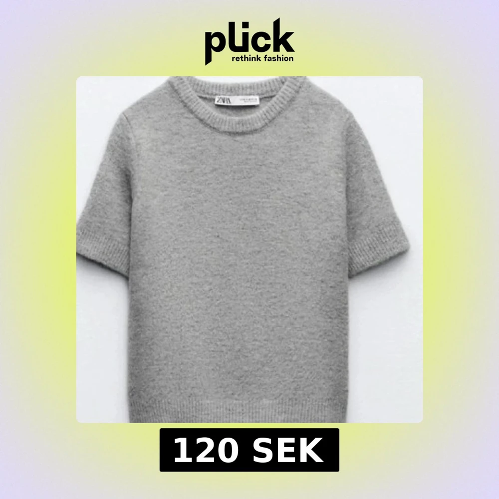 Säljer en stilren grå stickad tröja från Zara. Tröjan har korta ärmar och en rund halsringning, perfekt för lager-på-lager eller som den är. Den mjuka stickningen ger en bekväm känsla. Passar till både jeans och kjol!
