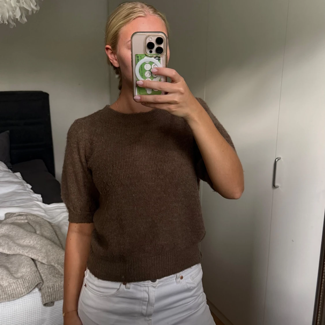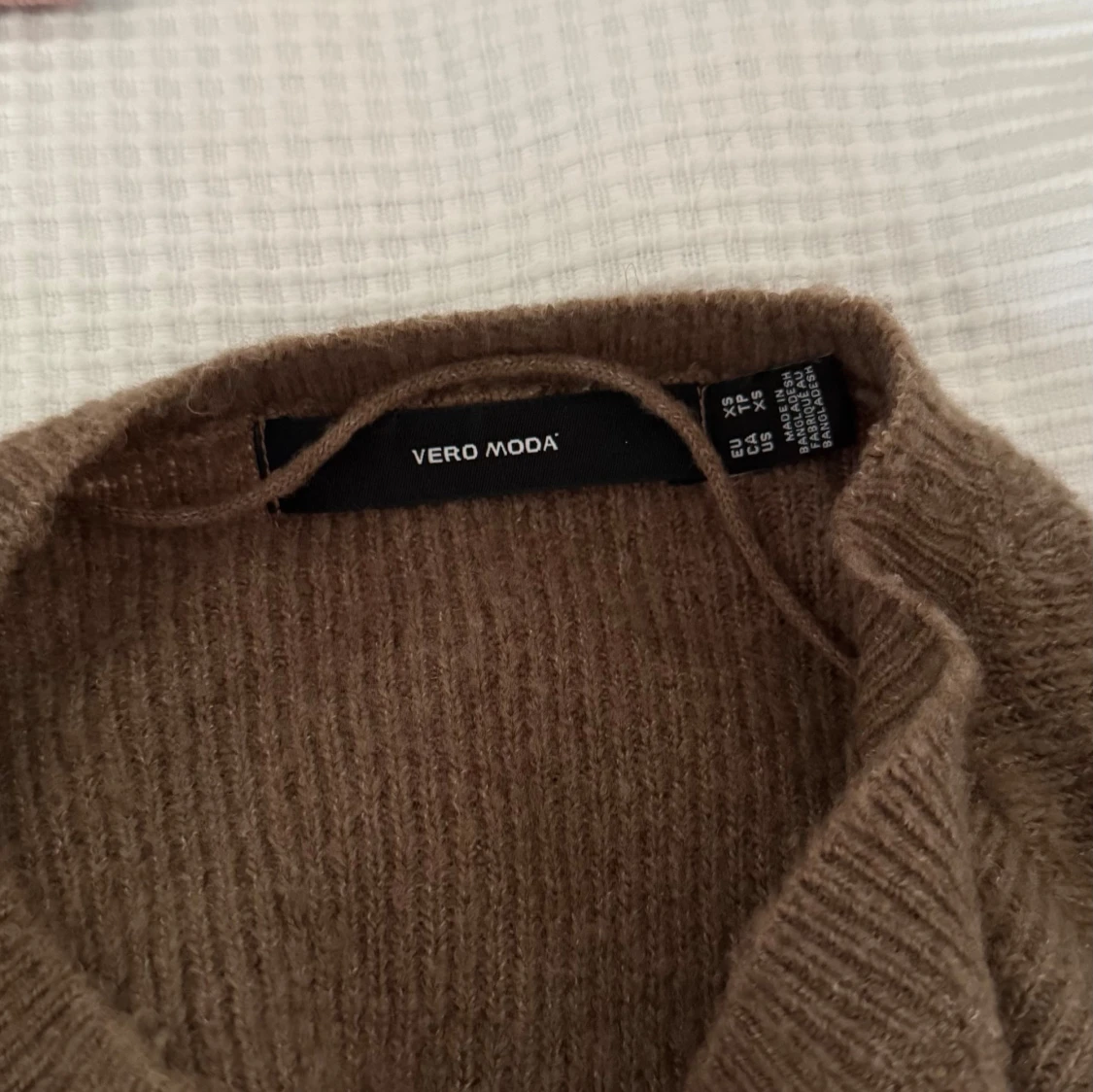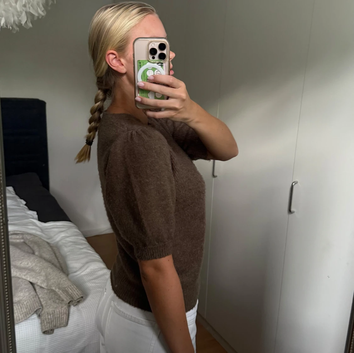 Jättefin oanvänd brun stickad t-shirt med jättefina volanger/detaljer. Den har jättefin färg som passar väldigt bra med vitt! Den är ifrån Vero Moda i storlek XS men jag tycker den känns som S.