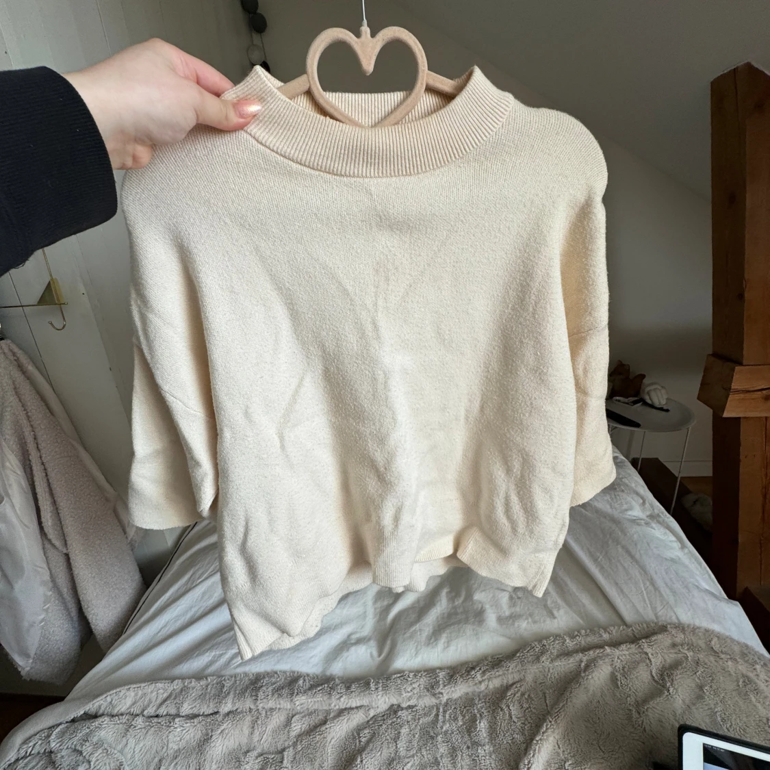Trekvartärmad stickad T-shirt