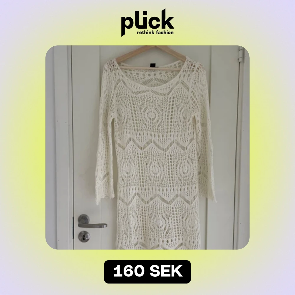 Säljer en superfin vit stickad klänning från H&M. Den har ett snyggt mönster och trekvartsärmar, väldigt fin över en baddräckt på stranden. 🐚