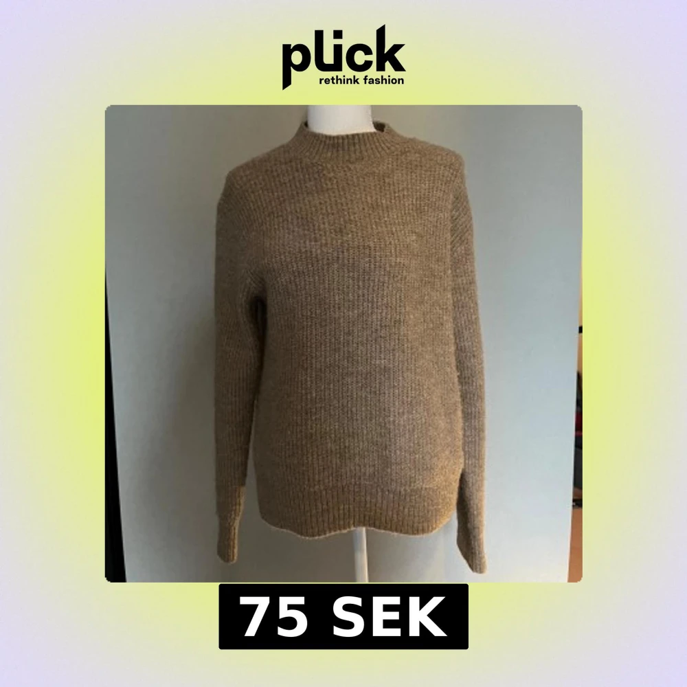 Mysig beige stickad tröja med rund hals och långa ärmar. Större i storleken