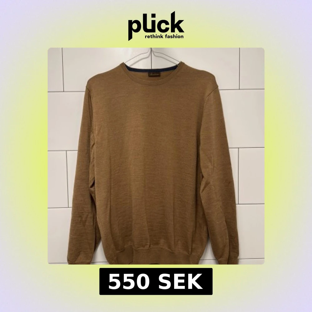 Snygg brun stickad tröja från Stenströms med rund halsringning och mörkblå armbågslappar. Tröjan har en klassisk passform och är perfekt för lager-på-lager. Nypris ca 1700 SEK.Hör av dig vid minsta fråga. Mvh