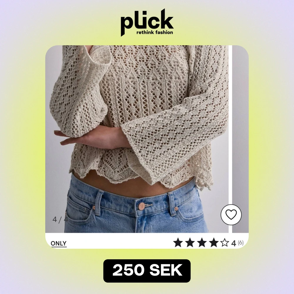 Säljer en superfin beige stickad tröja från ONLY. Den har ett vackert spetsmönster och är lite croppad med långa ärmar. Perfekt för vår och sommar när du vill ha något lätt och luftigt. Passar både till jeans och kjol för en avslappnad look.