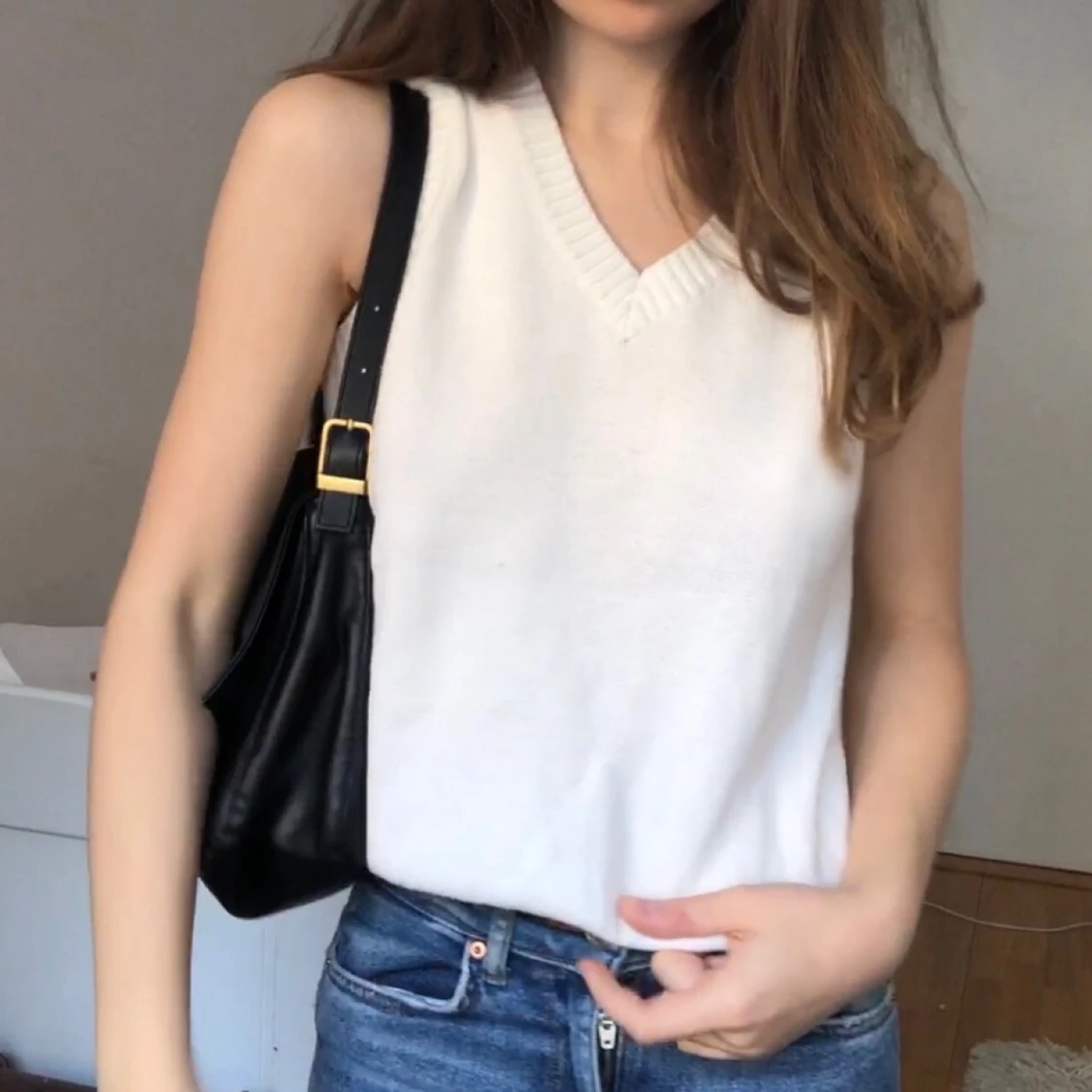 Mysig vit stickad väst från Brandy Melville som är så fin till vintern ❄️ Ingen storlek står men uppskattas till XS-S