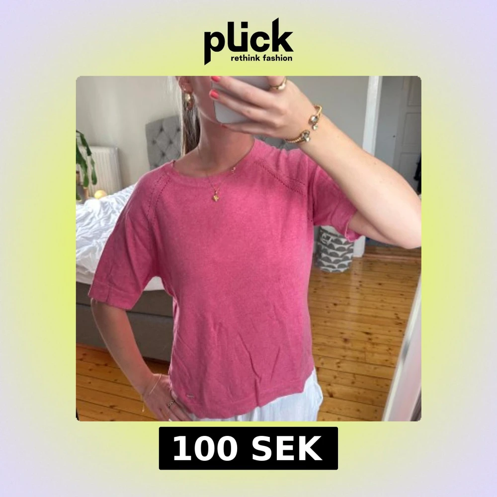 Rosa stickad tröja. Passar s/m beroende på hur man vill att den ska sitta