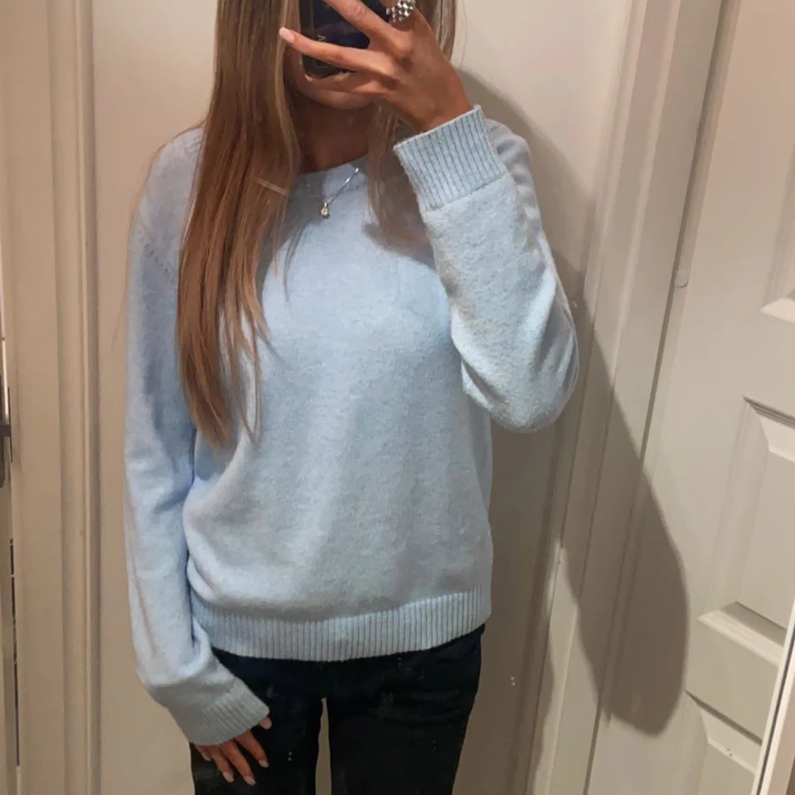 Säljer nu min i princip nya tröja då jag har för många stickade tröjor🙌🏼Helt perfekt färg!❄️💙