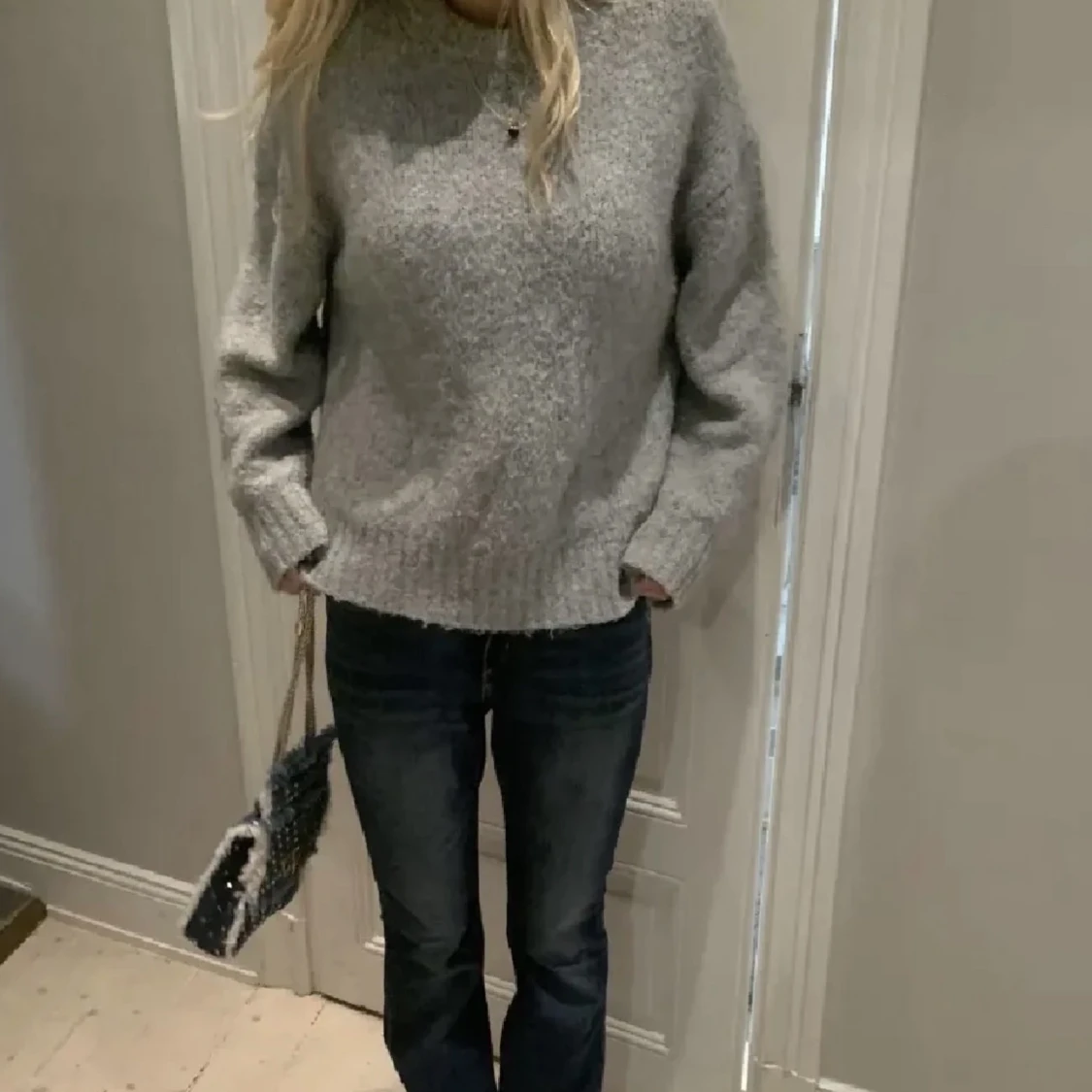 Grå stickad tröja från zara, storlek S :) Passar XS-M skulle jag säga. Obs inte min bild!!