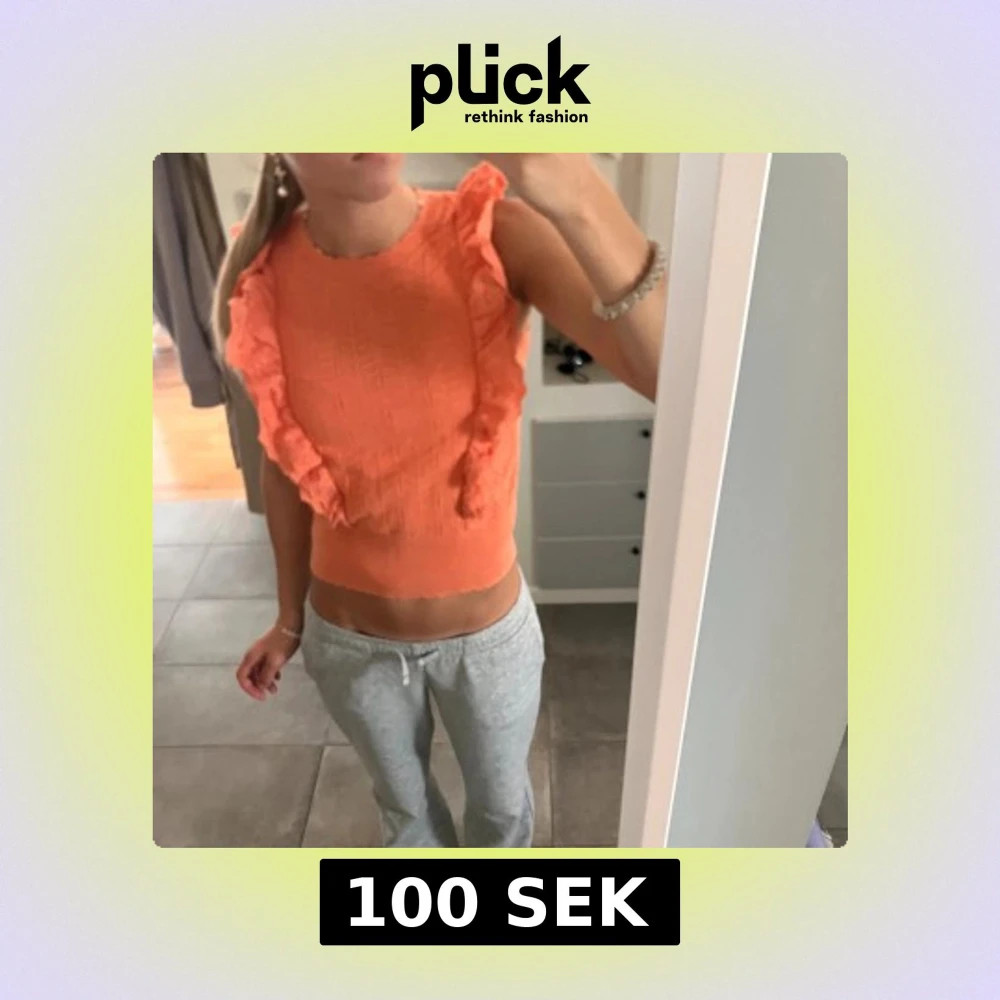 Superfin orange topp från Holly & Whyte med volanger längs axlarna och ett snyggt stickat mönster. Ärmlös och croppad modell. Perfekt på vår och sommar