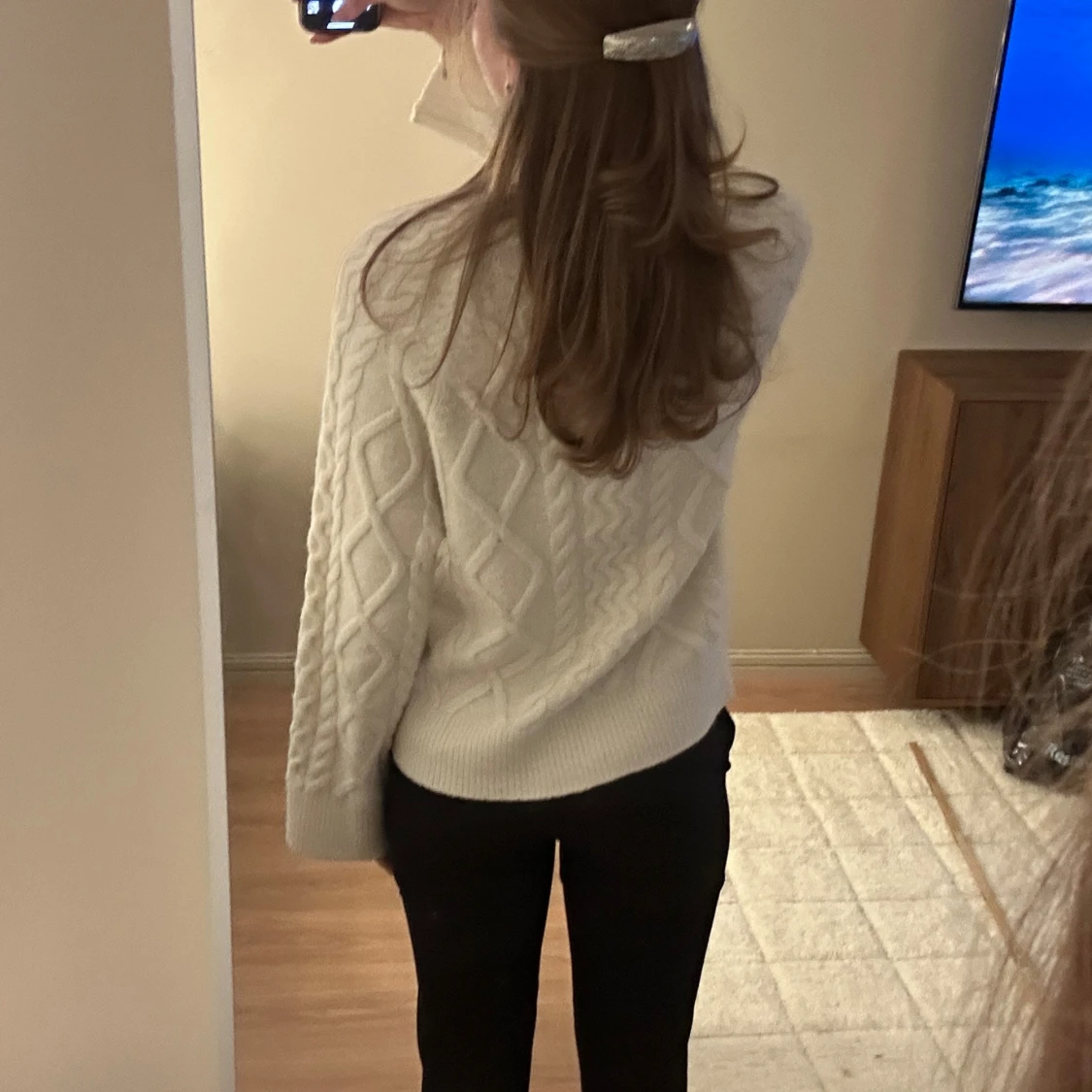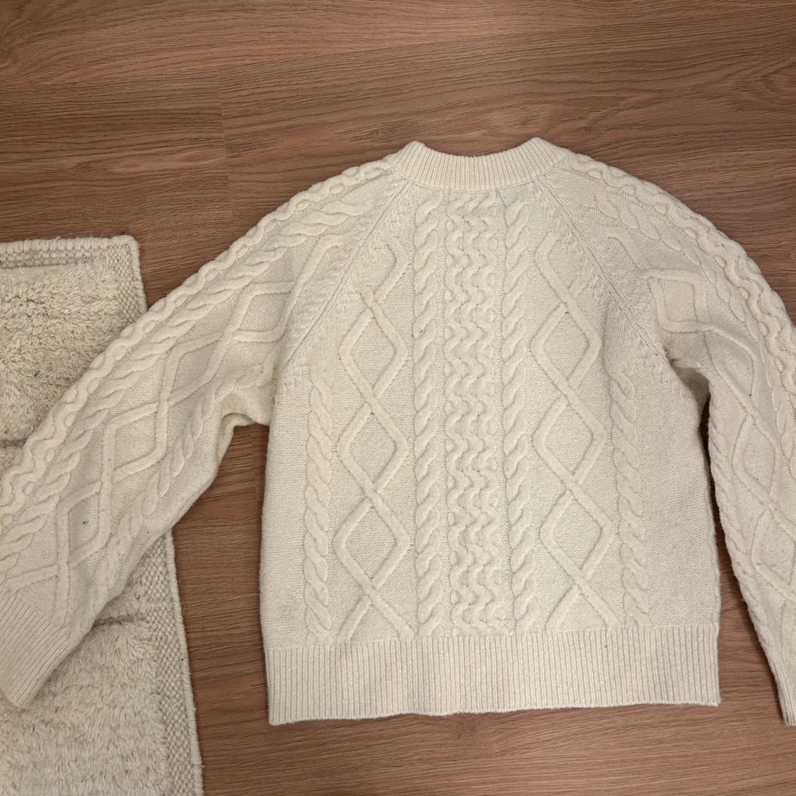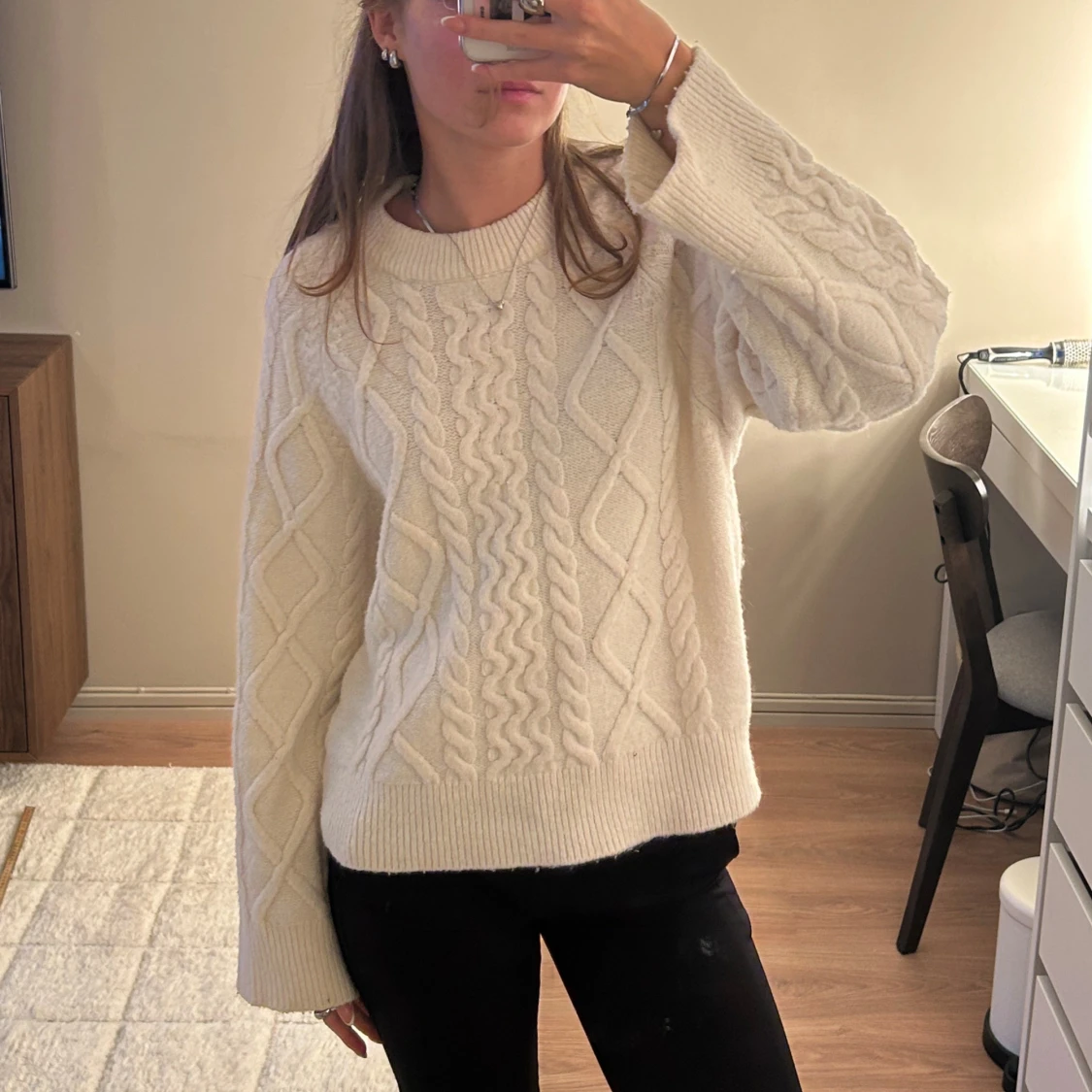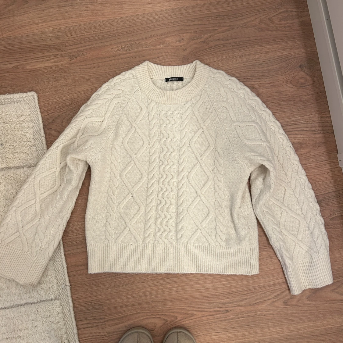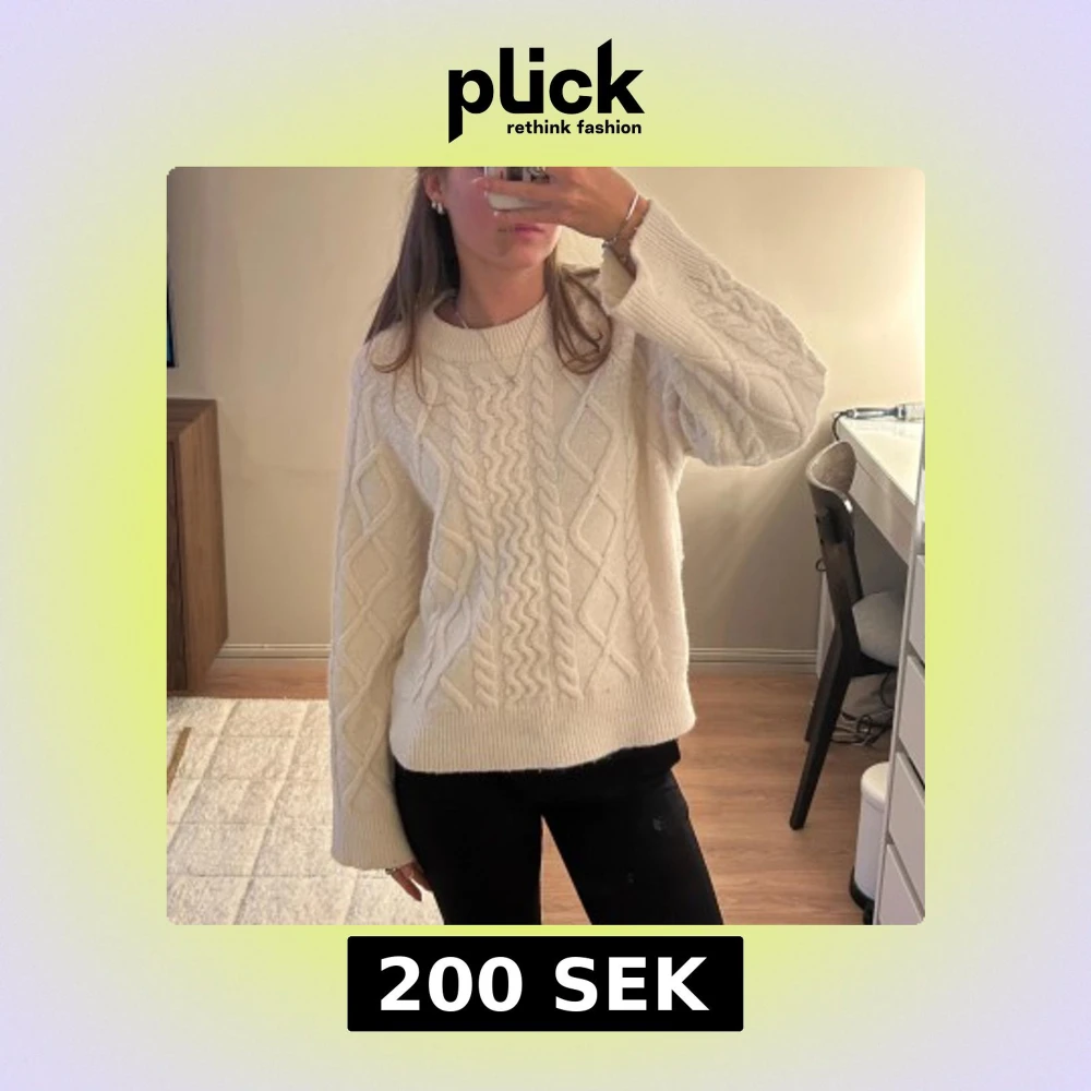 Jättesöt stickad vit tröja från Gina Tricot. Perfekt nu till vintern. I strl S. Använd men i bra skick.