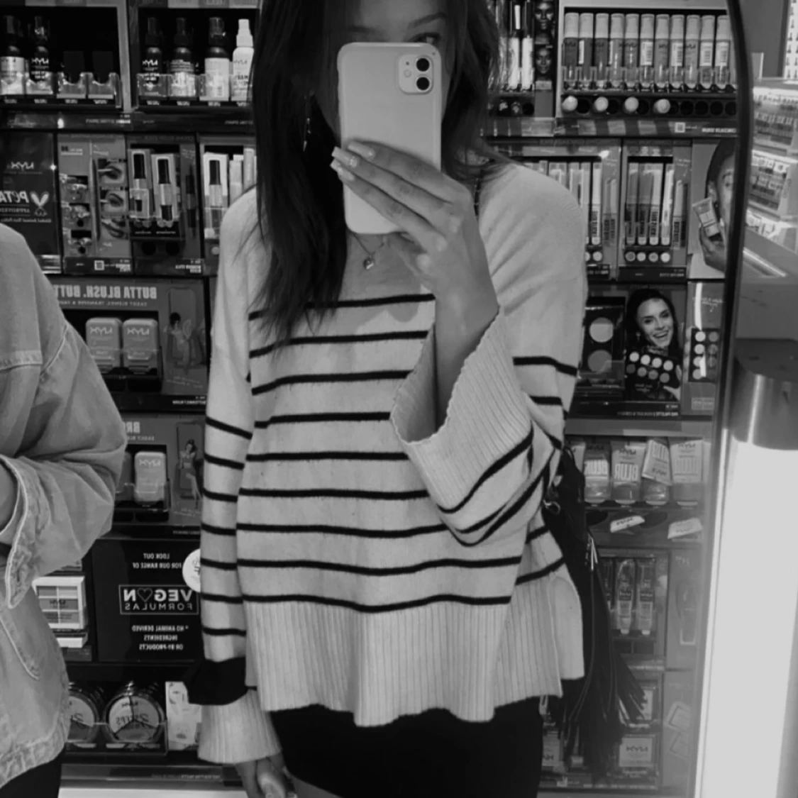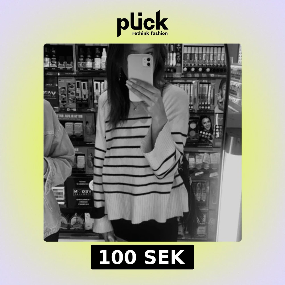 Säljer min fina vita stickade tröja med svarta ränder💕