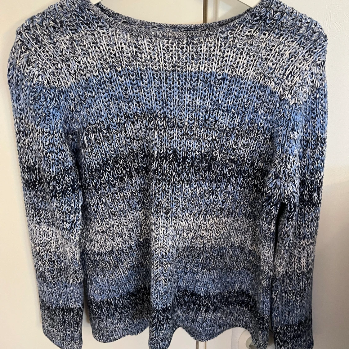 Blå stickad tröja köpt secondhand. Tyvärr inget märke, kan vara handstickad Knappt använd och är i nyskick