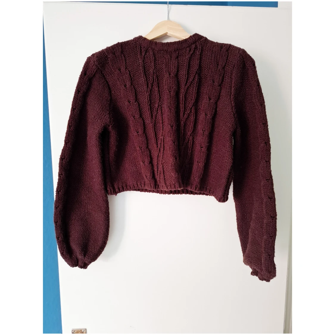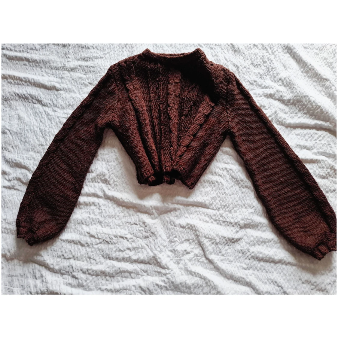 Supergosig croppad tröja, stickad och mönstrad med ballongärmar. Passform är som bild 4