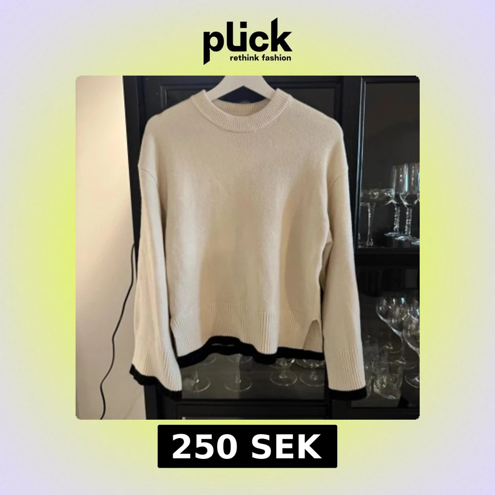 Vit stickad tröja med slits och svarta muddar som detaljer, från Gina Tricot och är slutsåld. Strl xs passar S-m också, använd typ 3ggr