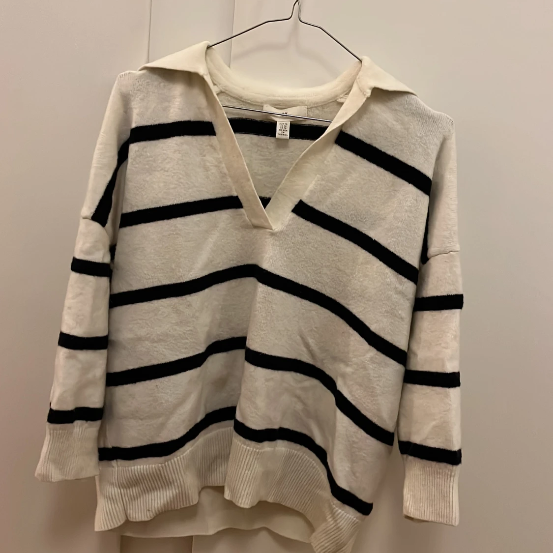 Superfin och varm stickad tröja. Blå och vit randig. Använd ett fåtal gånger.💕