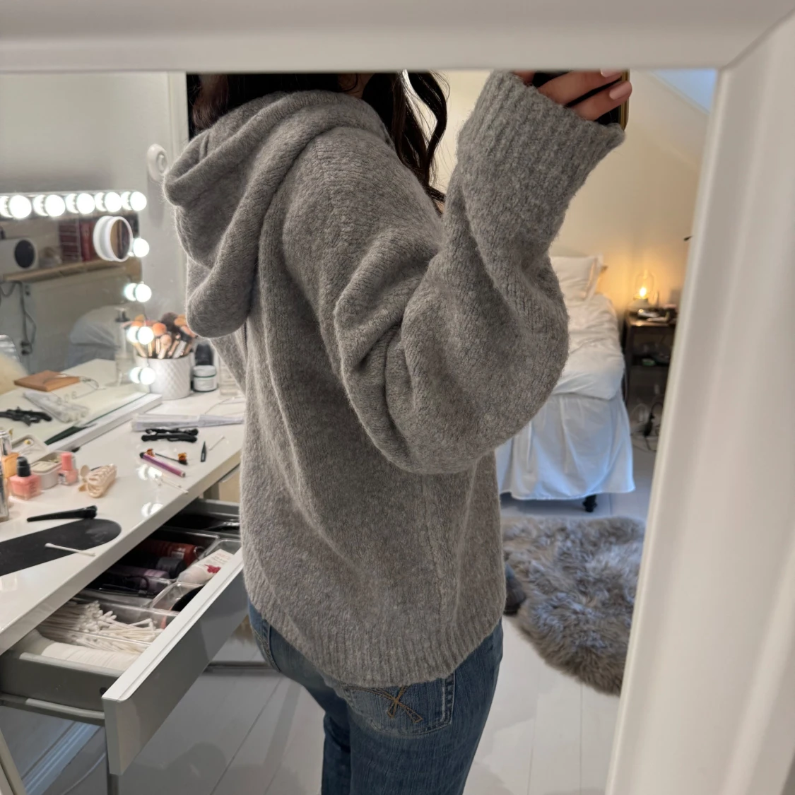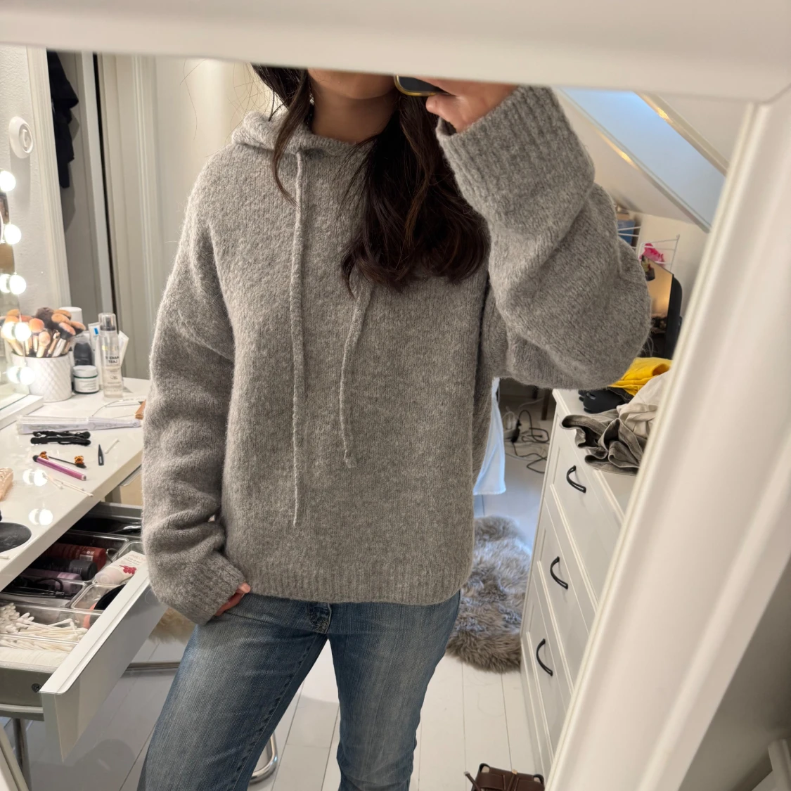 Såå himla gosig stickad hoodie i en oversized modell!! Perfekt layering på en svalare vår/sommarkväll😍💕 Köptes nyligen men endast använd 1-2 gånger, säljer då jag verkligen måste rensa!! Säljer en likadan marinblå😇