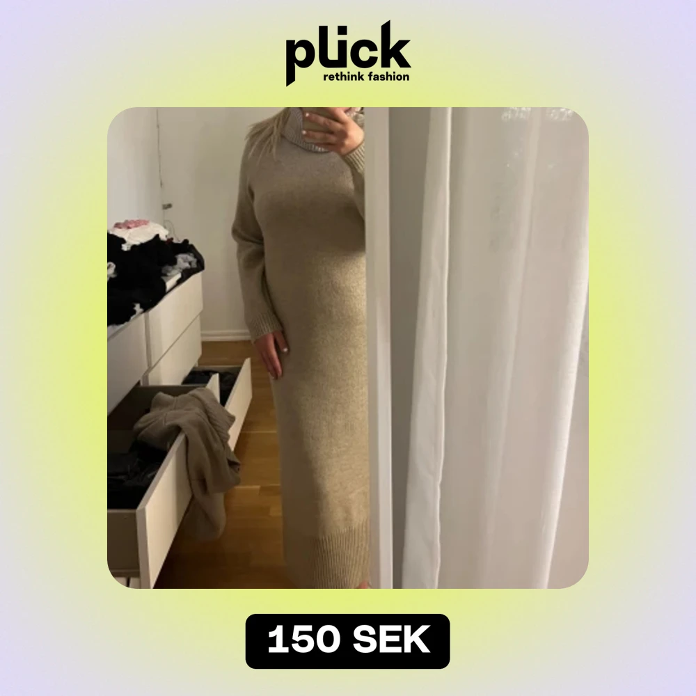 beige stickad klänning med polokrage🌸🩷använd fåtal gånger den är lång