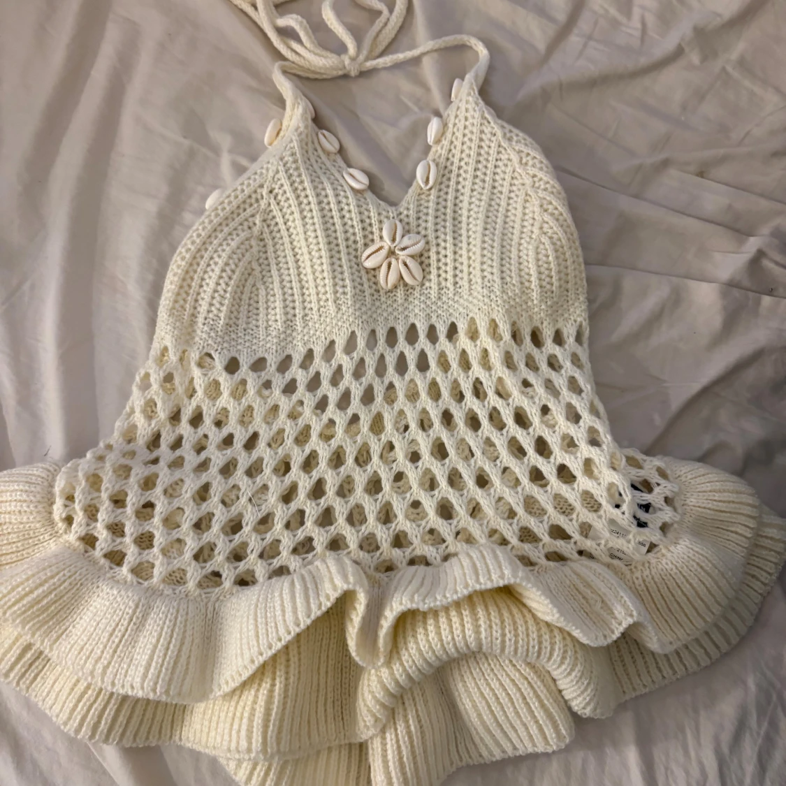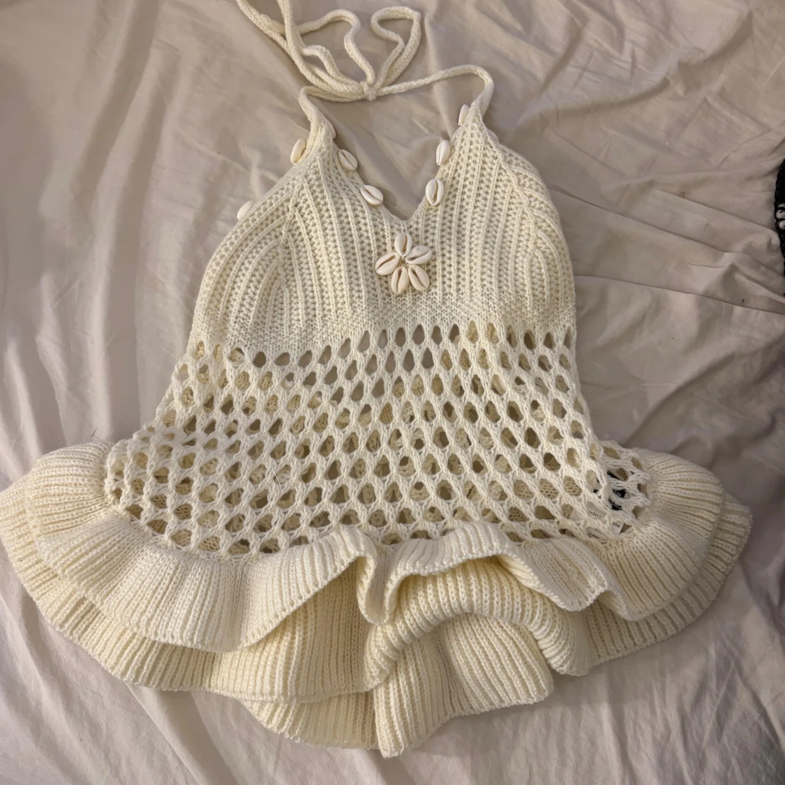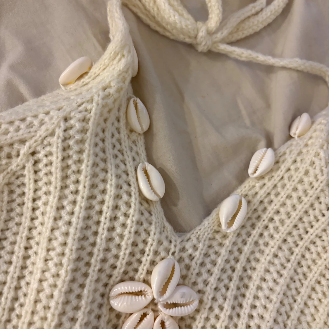 Säljer en jätte söt somrig/festlig topp som man knyter runt halsen, även fina snäckor som detalj, knappt använd 🥰