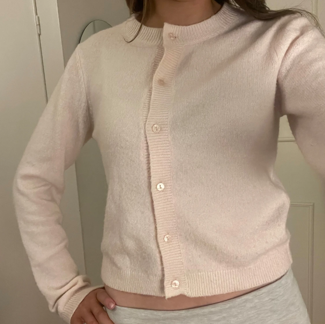 Superfin ljusrosa stickad kofta från H&M i storlek S