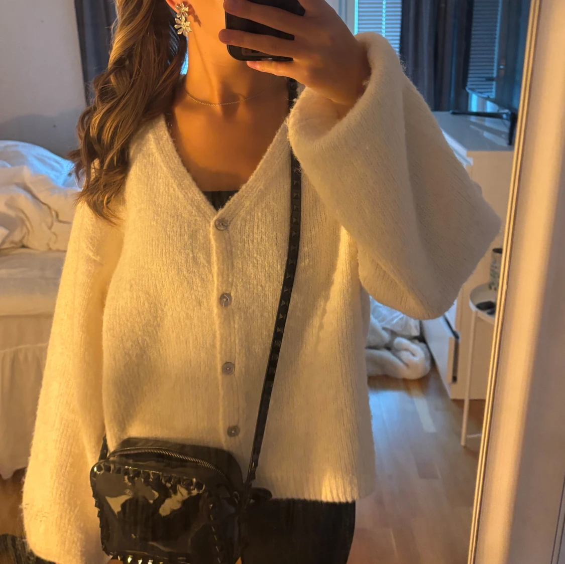 Stickad kofta vit