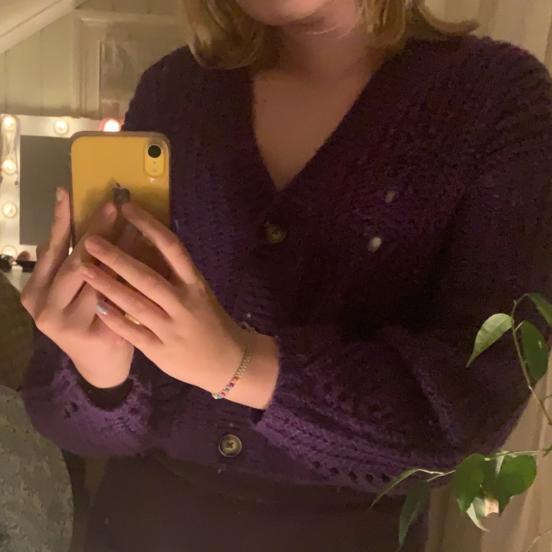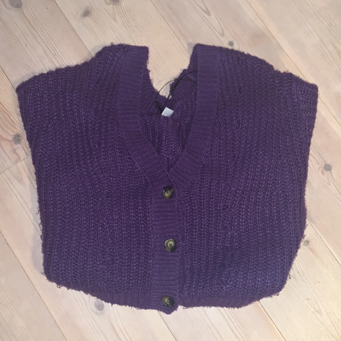 Stickad lila kofta från hm. Denna är bara använd ental gånger och är i ett väldigt bra skick. Den är i storlek XS men passar mig bra som har storlek M💕