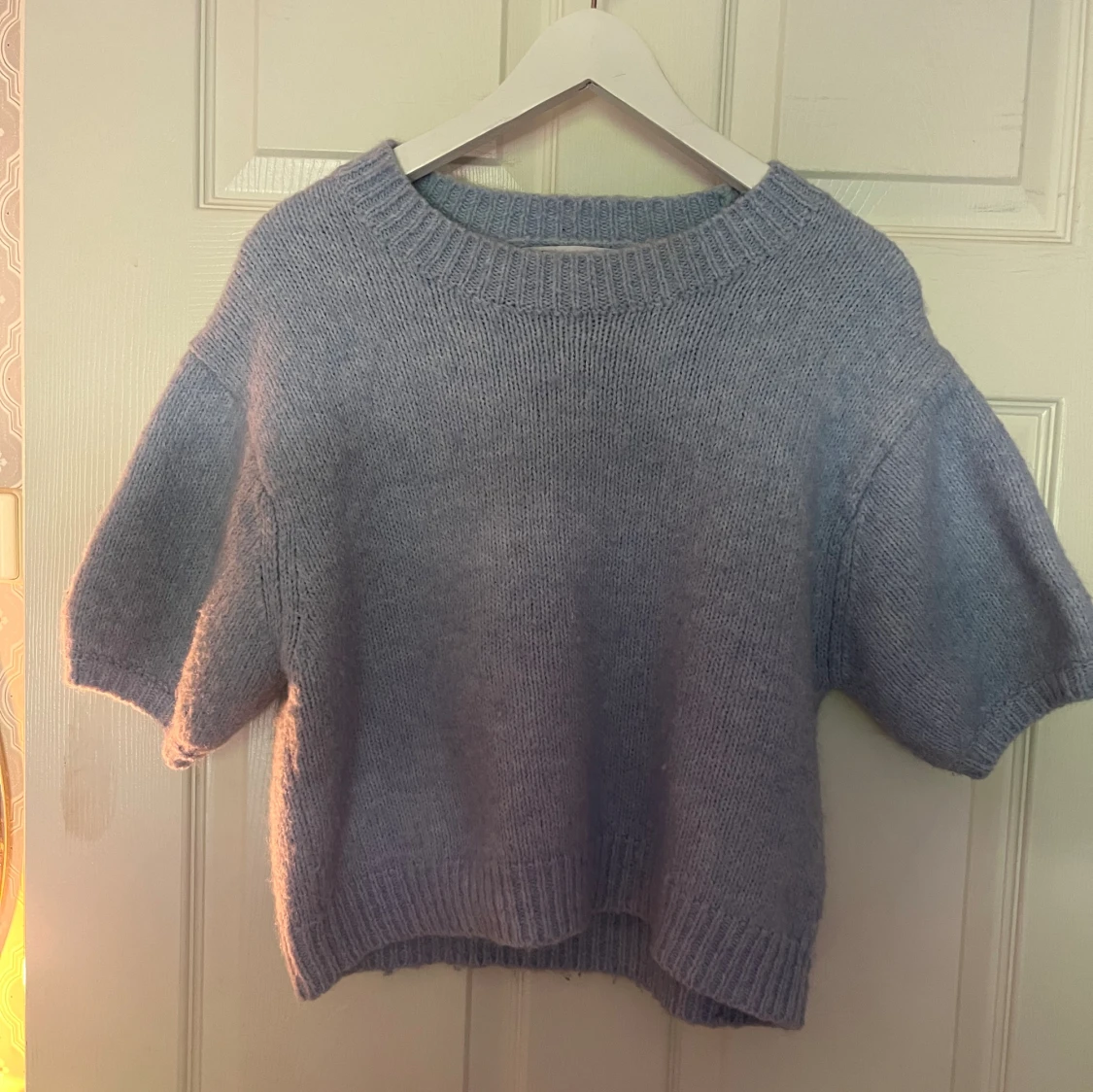 Snygg blå stickad kortärmad tröja från zara!🩵