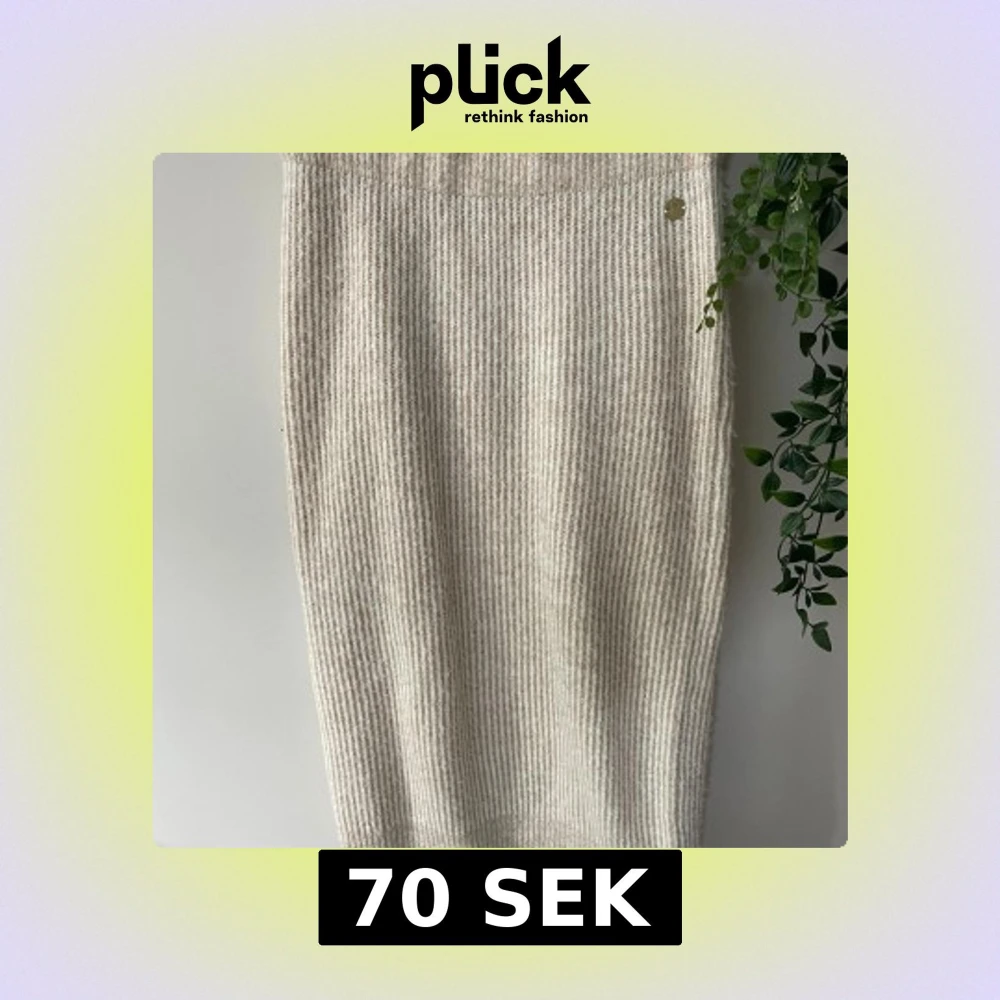 Supermysig beige stickad långkjol med ribbad struktur. Kjolen har en rak passform. Är från Pernilla Wahlgrens kollektion på gåkås.