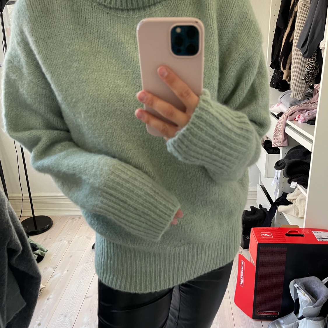 Lång stickad tröja med polokrage. Najs att ha över en kjol eller klänning på sommaren.