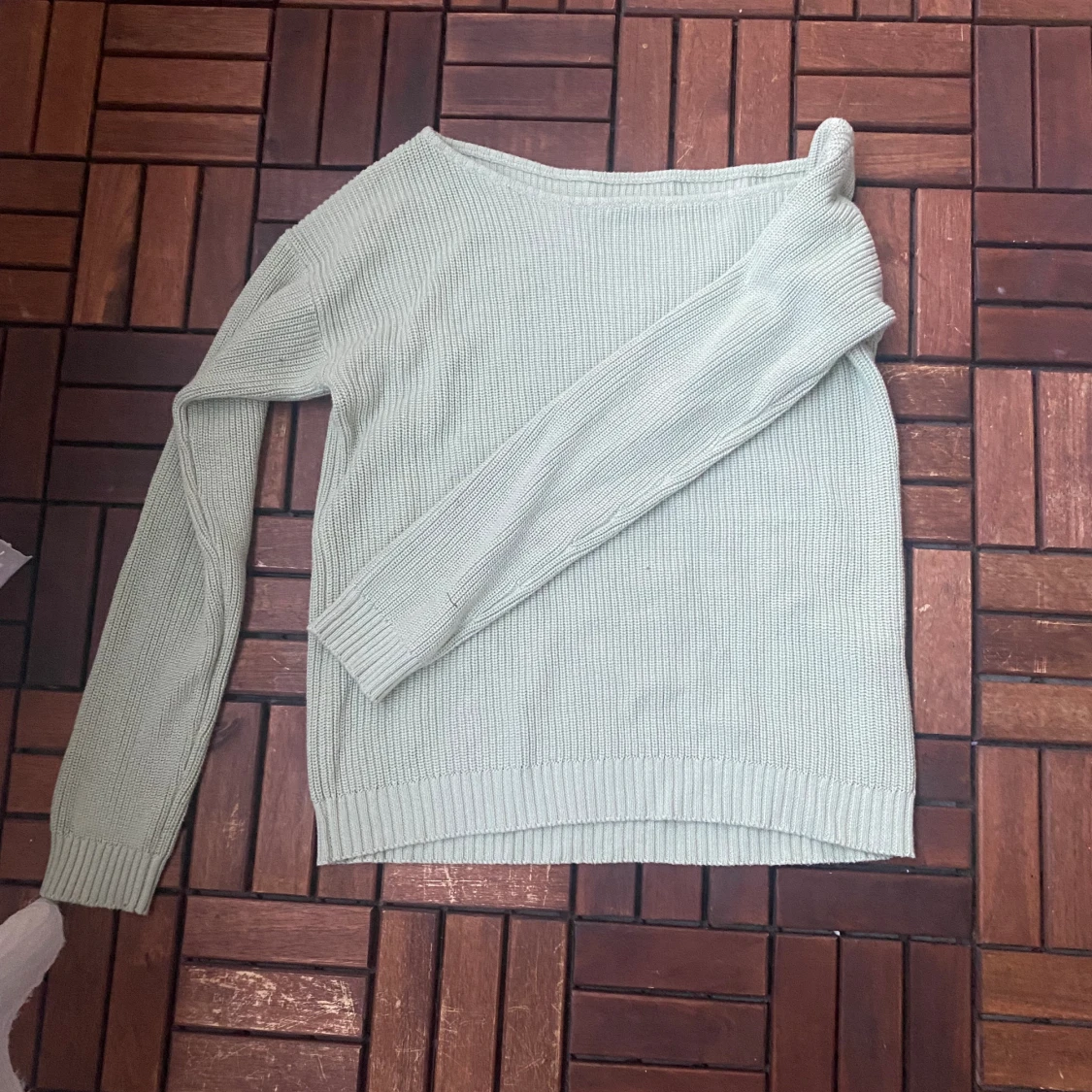 Snygg off shoulder tröja, den är ljust mintfärgad , lite svårt att se på bilden 😅