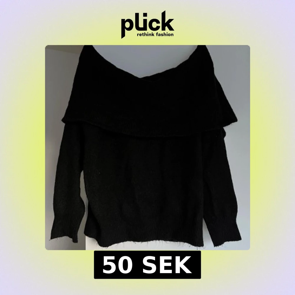 Säljer den här svarta stickade offshoulder tröjan då jag inte använder den💕